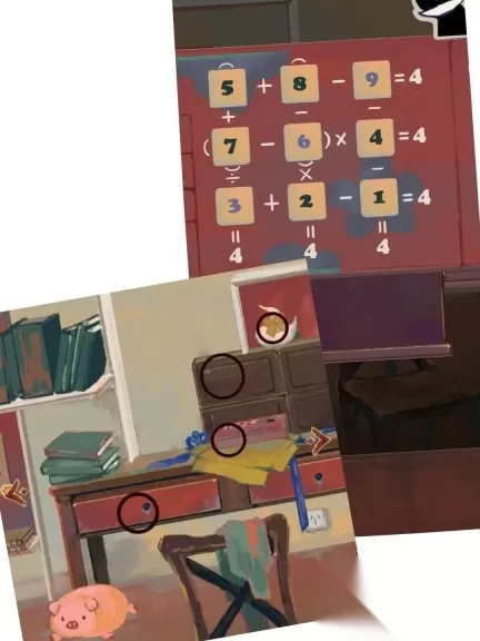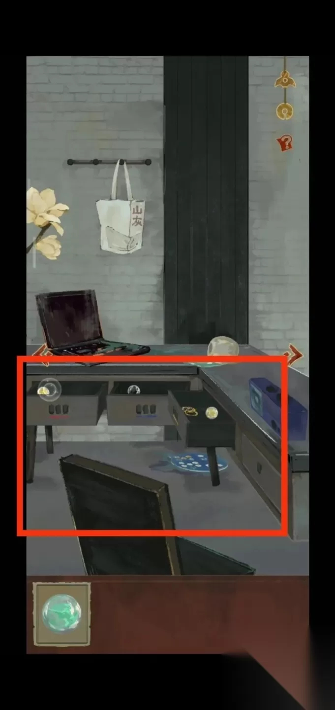 看完电脑内文件和照片,右下角点击红色锁,解锁,退出后拿取p7红框内五个球和门环,并按p8摆放球,最后将门环拖入