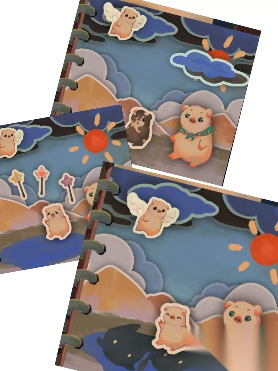 点击箱子露出小泥猪,拖动云朵冲洗干净,选择中间的 魔法 棒给她,把 天使 小猪拖到水面驱赶恶魔