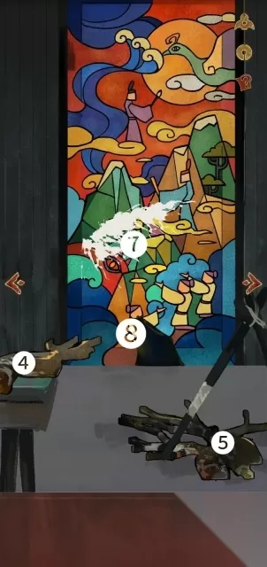 ⑨点击进入,进行翻页操作,可看到火折子热成像。左上角的描述为玉琮的摆放顺序,依照该顺序摆放好后,效果如同p7所示。