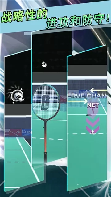 4、玩家可以选择高远球、平球或是短球,针对对手的弱点进行攻击。