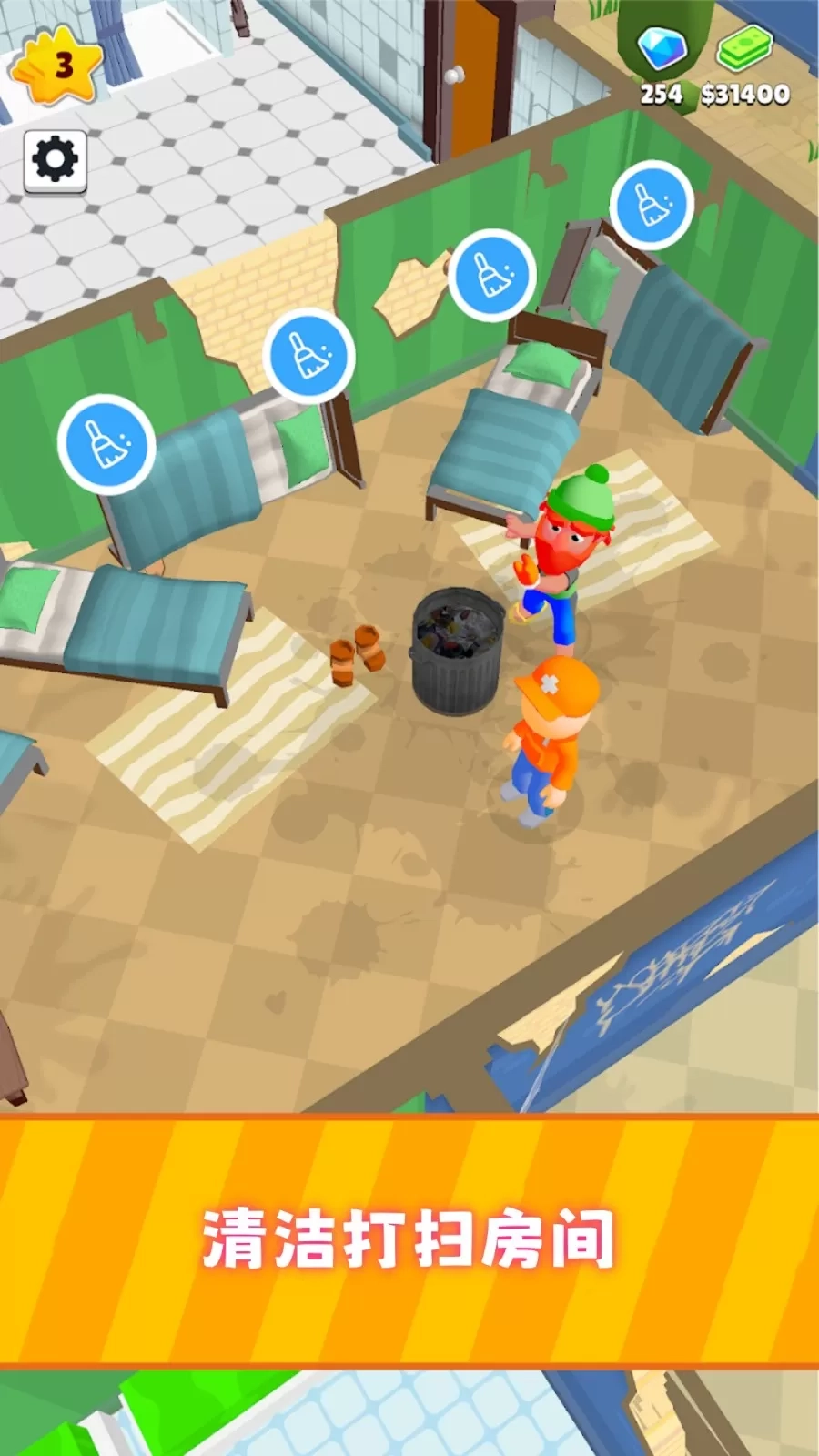 3、时间管理贯穿全程,需合理安排清洁、接待、升级等各项任务的先后顺序,在有限时间内高效完成经营目标。