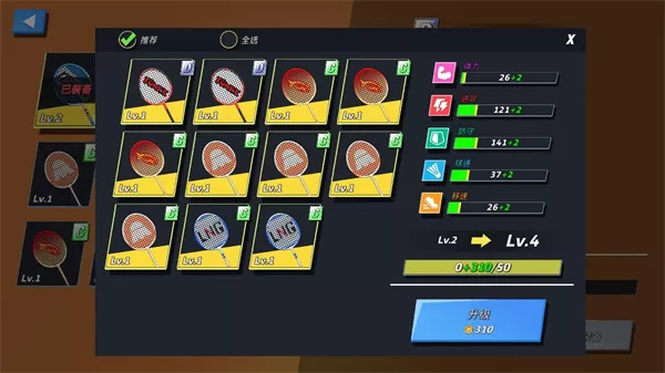 通过消耗其它球拍的经验来升级你的主球拍,一般是消耗低级球拍来升级高级球拍。萌新们一定要注意,可以将你的高级球拍锁住!锁住!锁住!别误吃啦!!