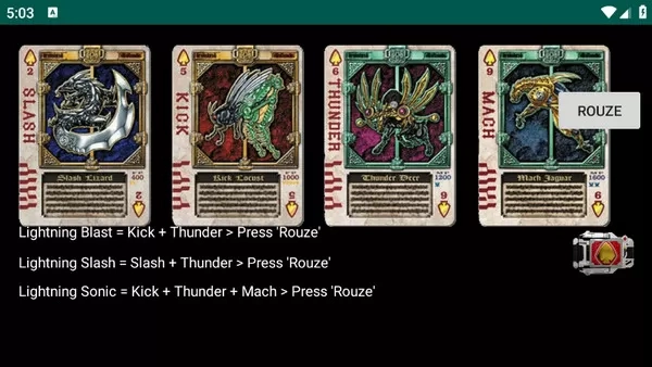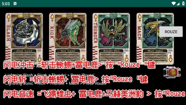 闪电音速 =飞踢蝗虫+ 雷电鹿+马赫美洲豹 > 按"Rouze "键