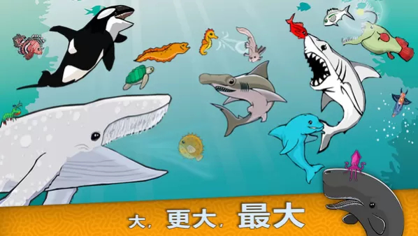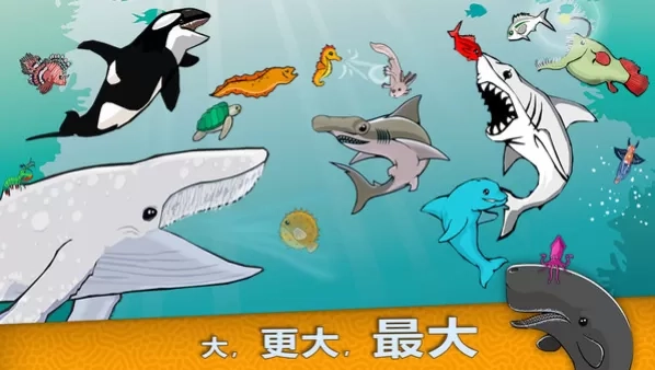 2、通过灵活操控你的鱼儿游动,吞食场景中体积更小的鱼群和海洋生物来积累经验、不断成长,同时需要巧妙躲避那些体型比你庞大的掠食者