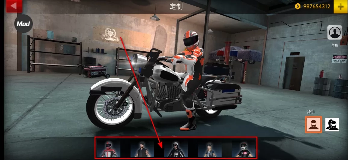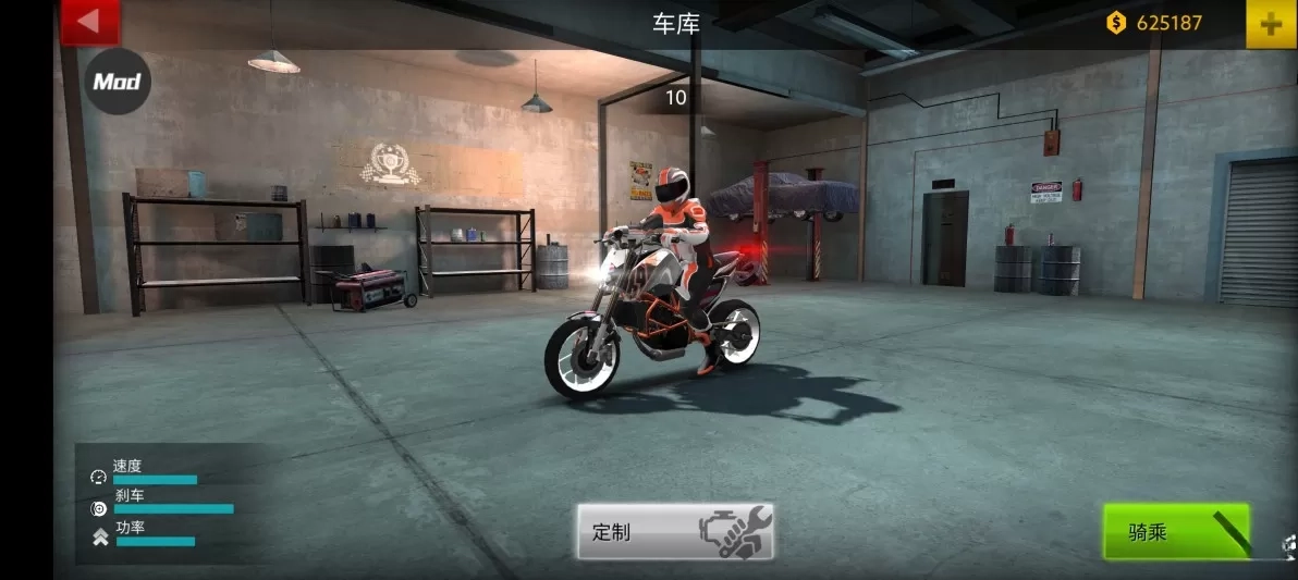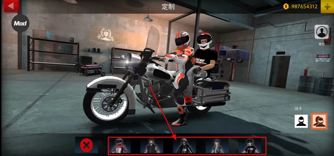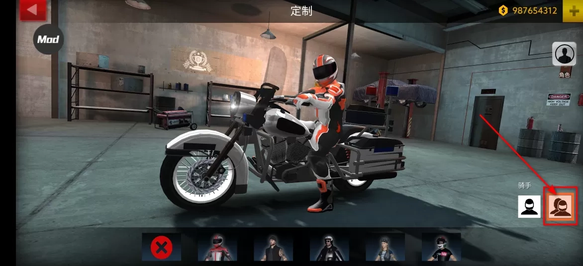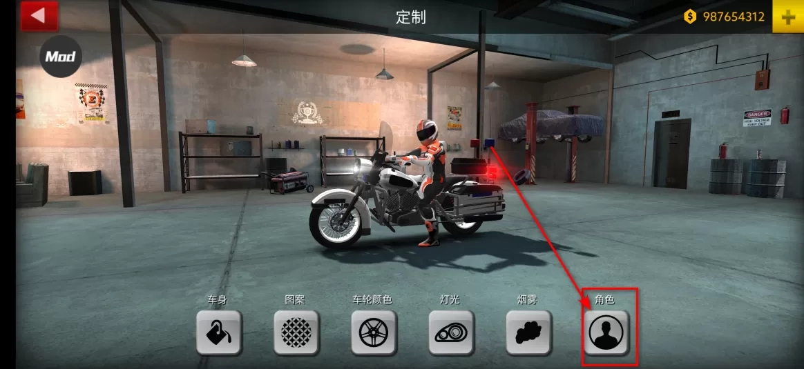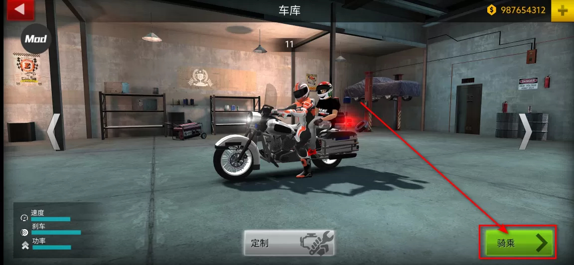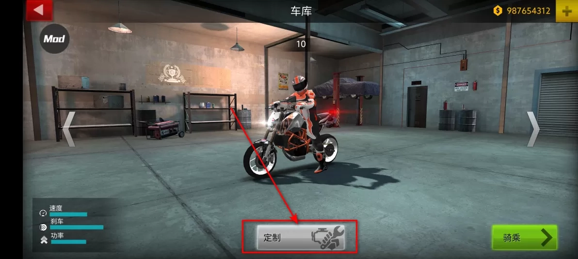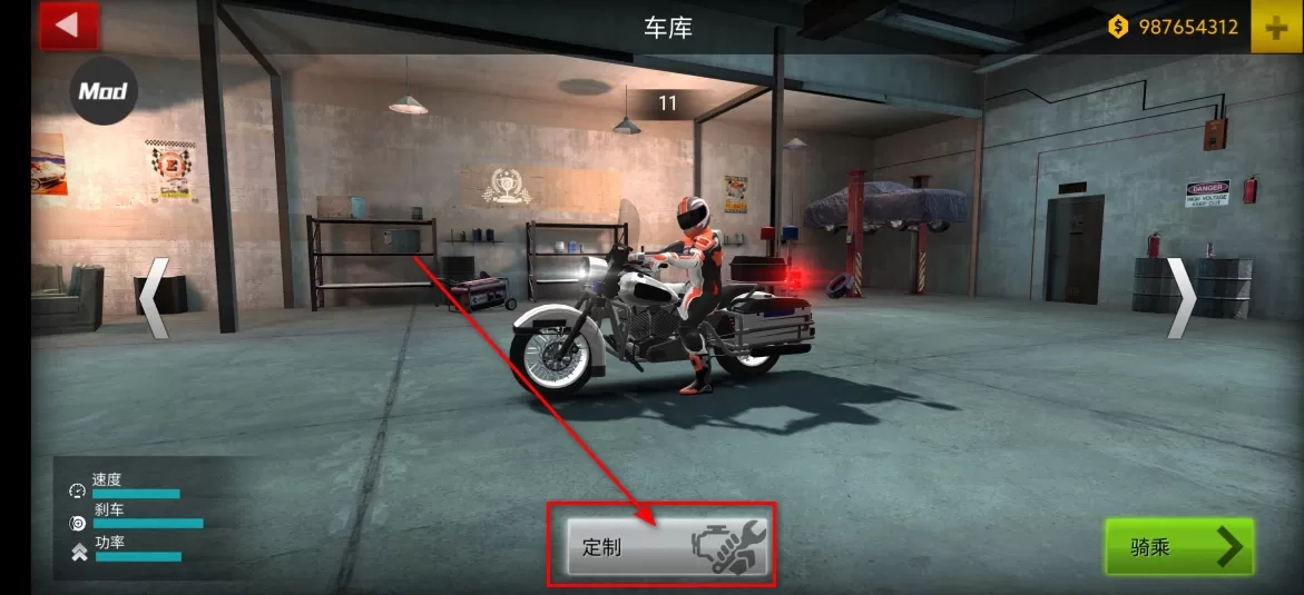 2. 随后点击定制,摩托车的挑选至关重要。像小编截图的这辆,仅能容纳一人乘坐,显然无法载人,所以得换一辆车。