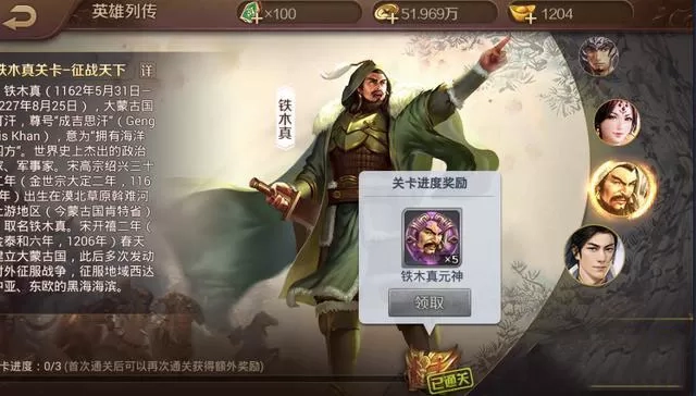 随后咱们进入之后选择英雄传记的铁木真。