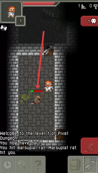 3、于游戏场景内,轻点屏幕操控角色朝着地牢中的敌人行进,借由战斗推动Level - 1的冒险进程。