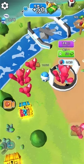 2、操控角色挖掘各类资源,收集资源用于建造、升级和交易。