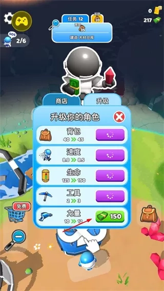 3、在升级界面,消耗资源或资金升级角色属性,提升挖掘效率和生存能力。