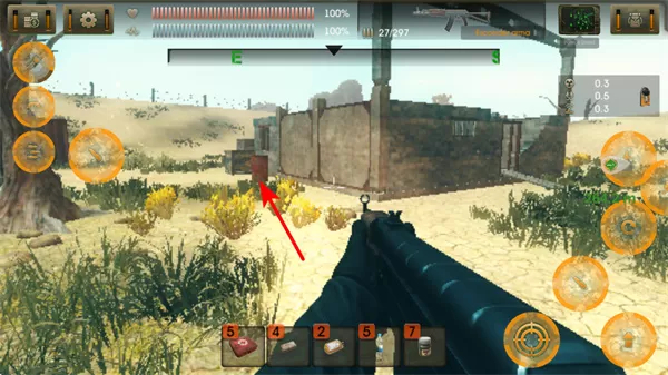 4、场景探索引导进一步深化了游戏的深度,以红色箭头指示场景内的资源点,例如红色箱子。玩家拾取这些资源点中的弹药,便可补充战斗过程中的消耗。