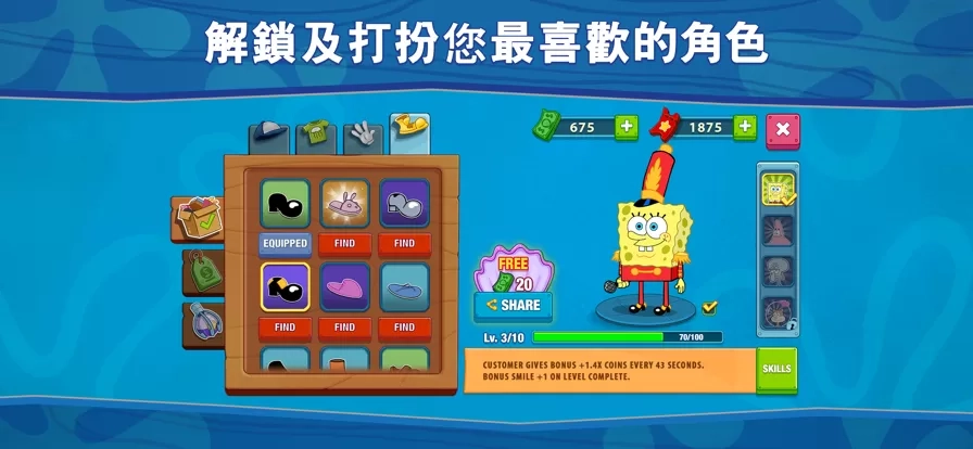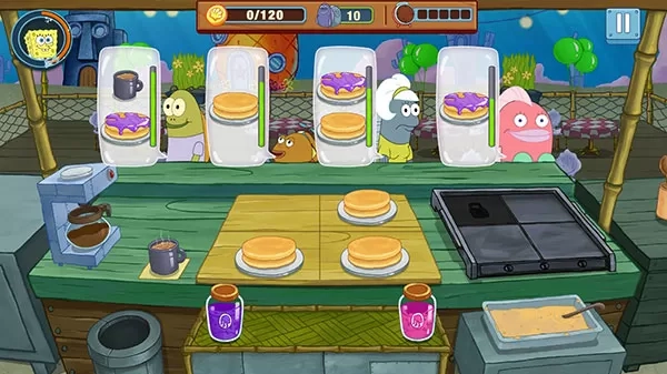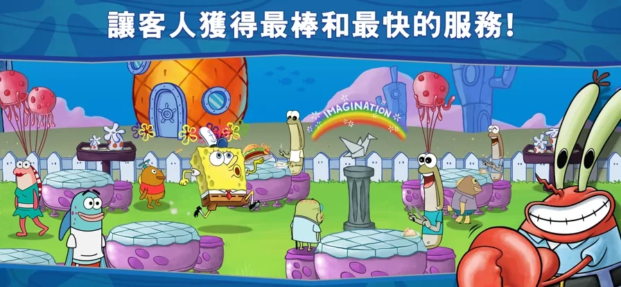 《海绵宝宝大闹蟹堡王2025最新版》是一款能带来超多欢乐的经营模拟游戏。游戏里有大家从小就钟爱的海绵宝宝,画面十分优美,角色设计与原作保持高度一致。在游玩过程中,诸多动画场景一一呈现,玩家仿佛置身其中,能真切感受到海绵宝宝鲜活的形象。 玩家在游戏中的主要任务,就是负责管理蟹堡王餐厅。经营期间,会有众多客人前来购买各式各样的汉堡。汉堡种类丰富多样,玩家得依据客人的具体要求制作汉堡。要是顾客满意,就会向玩家支付报酬。如此一来,玩家便能赚取更多金币。而这些金币不仅能用于升级自己的店铺,还能购买更多食材。