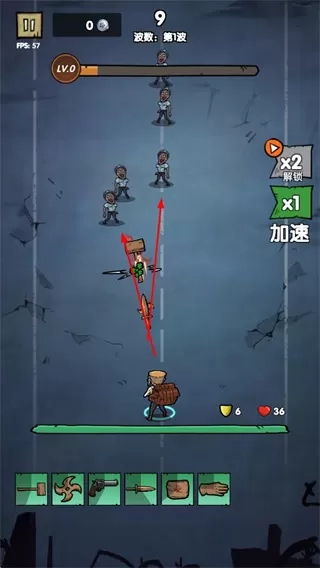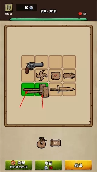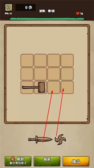 2、点击战斗参与波次战斗,利用合成的装备攻击敌人,抵御敌人进攻。