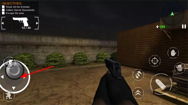 3、在战斗场景中,红色箭头指向左侧移动摇杆,提示玩家通过摇杆操控角色移动。这一步让玩家掌握最基础的移动操作。