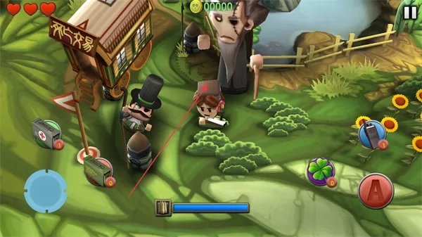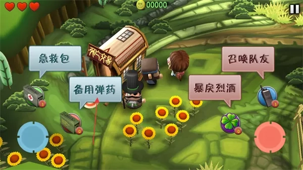 1. 进入游戏后,注意左上角的红心,它代表着生命值,在红心旁边会显示金币数量。操控角色移动并攻击僵尸,以此来获取金币。