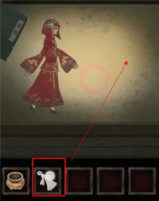 7、向右走,来到门前,这宫里门口有个纸人,点击左边柜子的中间可以得到一瓶浆糊,返回到前面拜天地的场景使用浆糊黏住托盘里的纸钱,如图拼凑好。