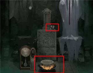 20、移步到灵棚里,把纸马烧给来人,左侧柜子的抽屉会打开,取出望远镜。