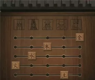13、移步到洞上方的扇子处,按照刚才得到的字翻牌,即可打,取到镜子。