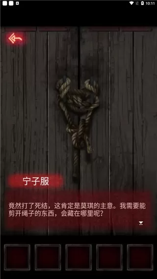 3、返回房门,点击门口的绳子使用剪刀钳剪开房门的绳子,进入进行剧情。