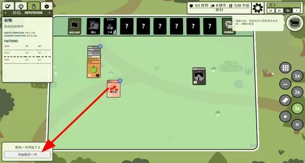 2、当提示新的一天开始时,点击开始新的一天,开启新一天的游戏内容与挑战。