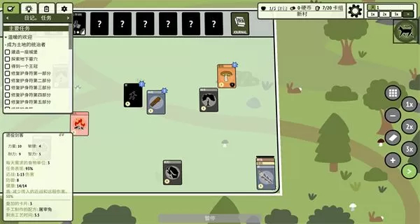 过程中游戏会随机出现各种事件卡牌,如怪物袭击或天气变化,迫使临时调整策略应对突发状况,增加发展过程的不确定性。