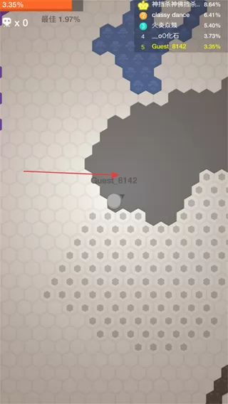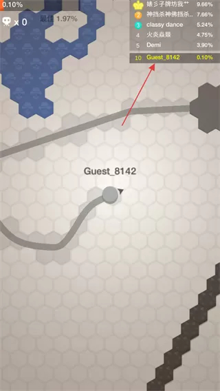 1、进入游戏,操控代表自己的Guest_8142圆圈在六边形地图上移动。