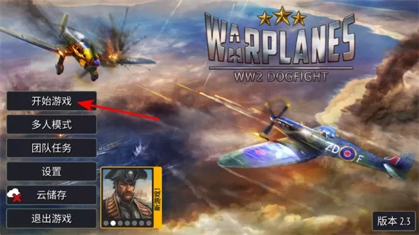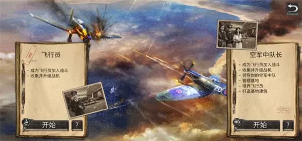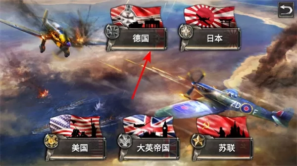 1、开始游戏进程,点击开始游戏按钮,进入游戏的阵营选择界面,开启二战飞机狗斗的冒险之旅。