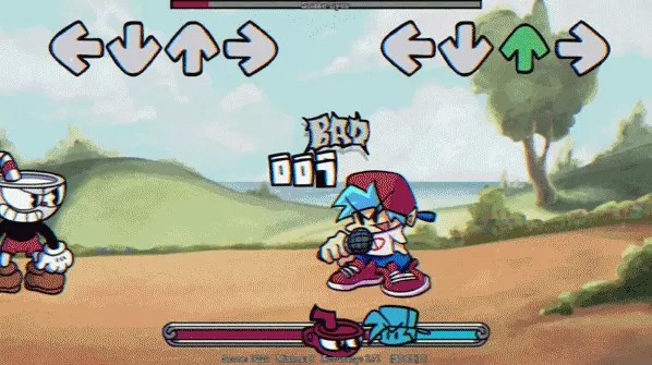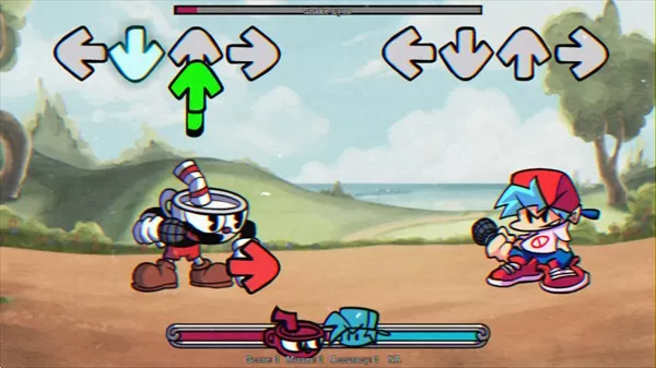 3、游戏采用回合制节奏玩法,对手会根据音乐节奏按下【↑↓←→】方向键发动攻击,双方的血条会随节奏进行对撞。