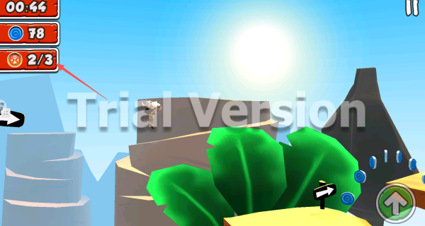 1在关卡推进过程中,我们要通过调整跳跃角度来完成跳跃动作,从而精准地收集蓝色道具。