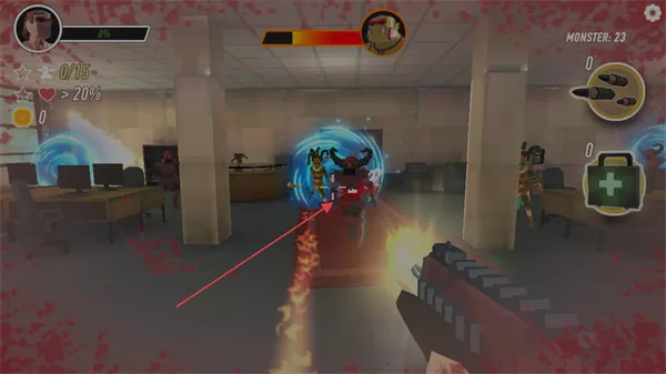 战斗场景主要设定在办公室,精心还原办公桌、文件柜、电梯等各类元素。僵尸会从走廊、会议室等各个不同区域现身,让玩家能强烈感受到场景的代入感。