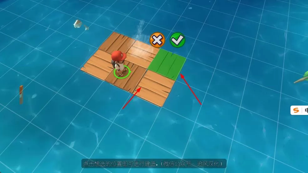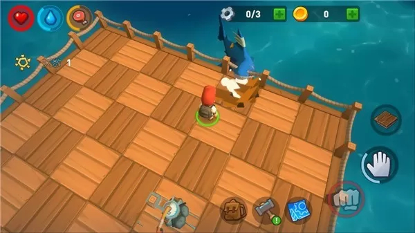 1. 在木筏的合适位置点击,开展建造工作,以此扩展木筏的面积,从而为生存创造出更多空间。