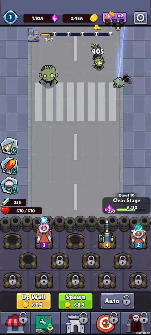 《合并僵尸战争》是一款超有趣的生存策略塔防类游戏。在游戏里,玩家需要在城墙上布置炮塔,以此来抵挡僵尸一波又一波的攻击。只要成功消灭所有来袭的僵尸,就能顺利闯关。而且,玩家还可以通过升级炮塔的等级,让炮塔变得更强大,进而抵御更为凶猛的僵尸大军。欢迎对此感兴趣的朋友们前来体验!