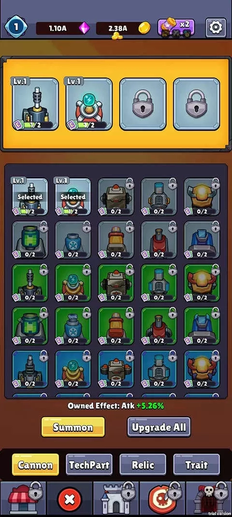 3、若火力不足,点击游戏界面下方菜单的第二个选项,在此选项中能够解锁大炮。