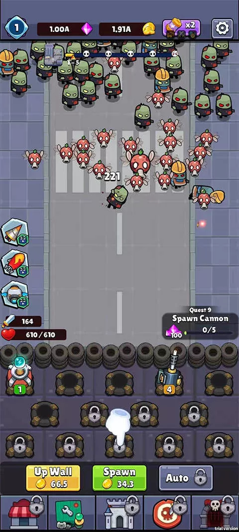 2、在攻打僵尸时,要记得收集钻石和金币。当拥有足够金币后,可点击spawn购买小炮。