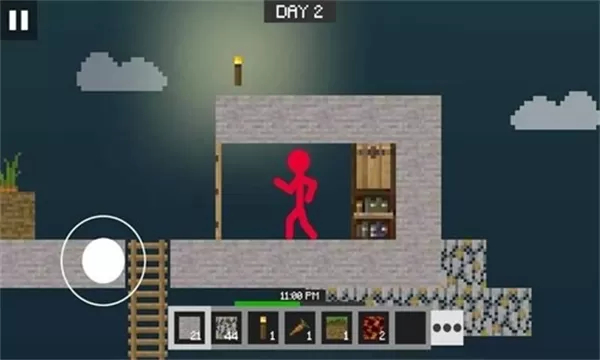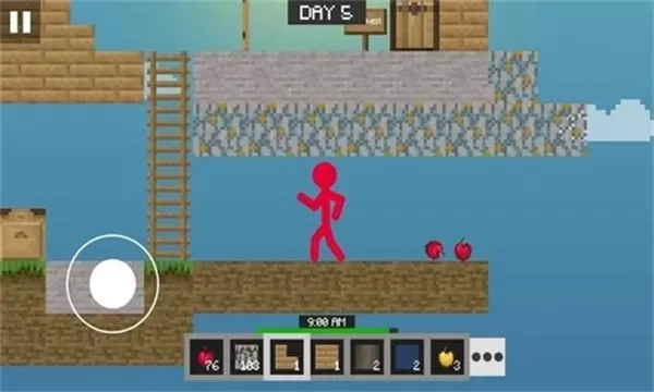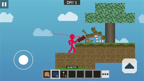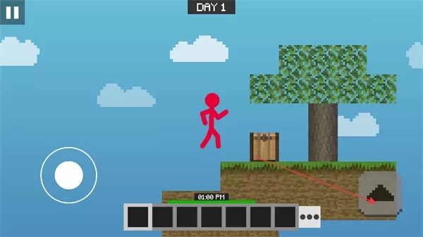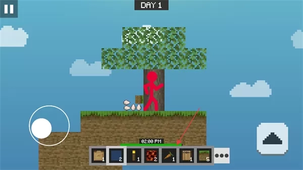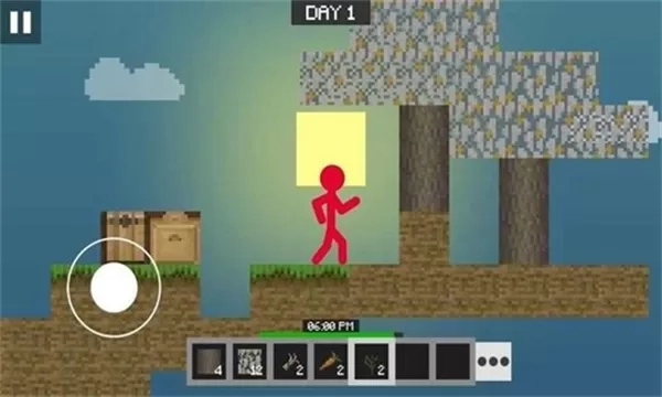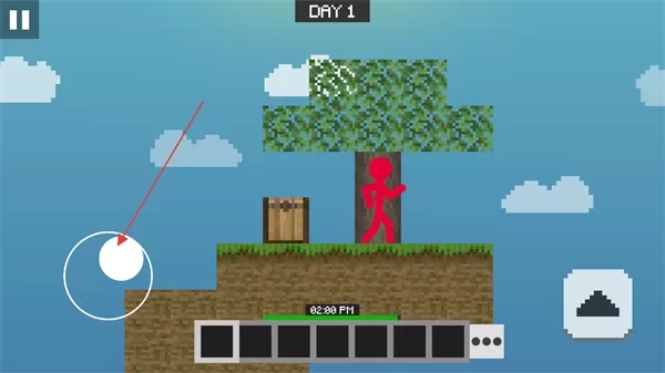 1. 通过操控左侧虚拟摇杆来移动火柴人,在空岛展开探索,同时要留意资源的分布情况。