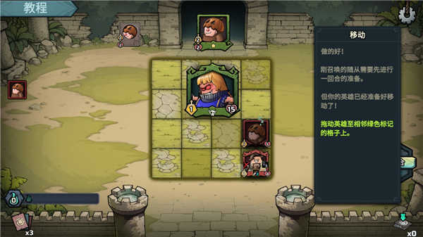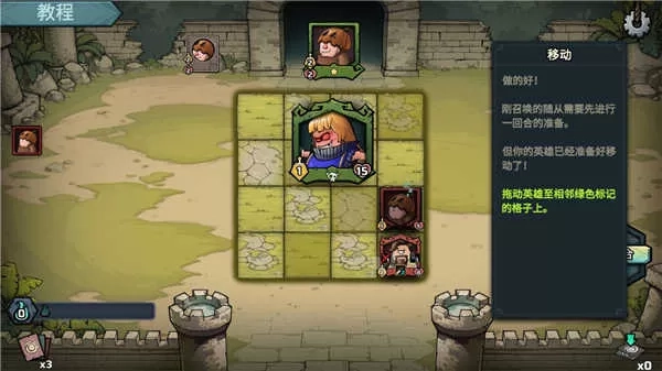 2、还可将英雄拖动至相邻绿色标记的格子上;