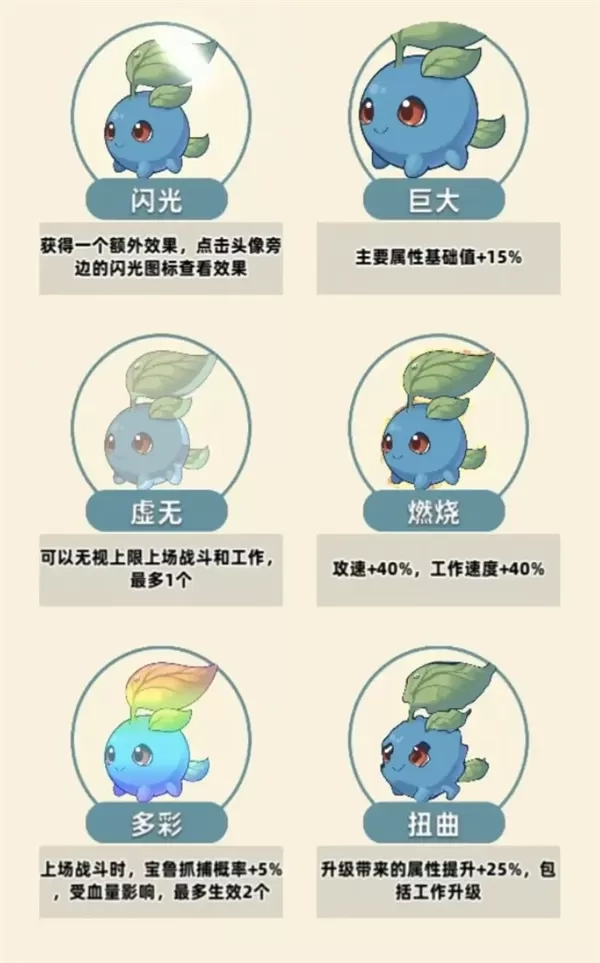 - 专属进化:每个宝鲁都有一个专属于自己的进化词条,只有无尽模式可以获取。