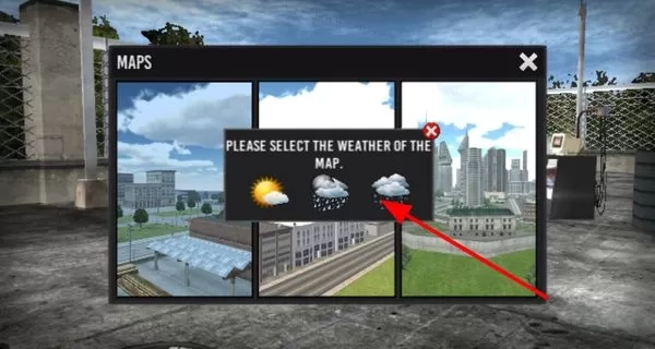 2、于主界面,玩家能够选择不同难度的关卡,同时也能够挑选诸如晴天、雨天等地图天气,不同的天气状况会对赛车行驶体验产生影响。