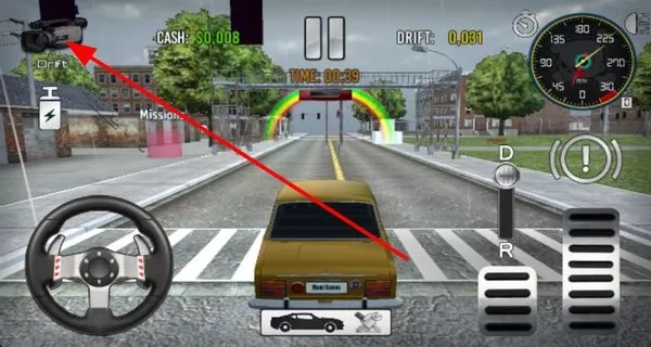 4、在游戏界面右侧找到视角切换按钮并点击,就能在第一人称视角与第三人称视角间切换,畅享不一样的赛车视觉感受。