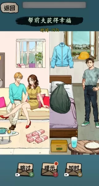 4、留意场景里的各类物品,像衣物、行李袋以及钱财等,围绕“帮前夫获得幸福”这一主题,对这些物品进行合理的搭配与使用。