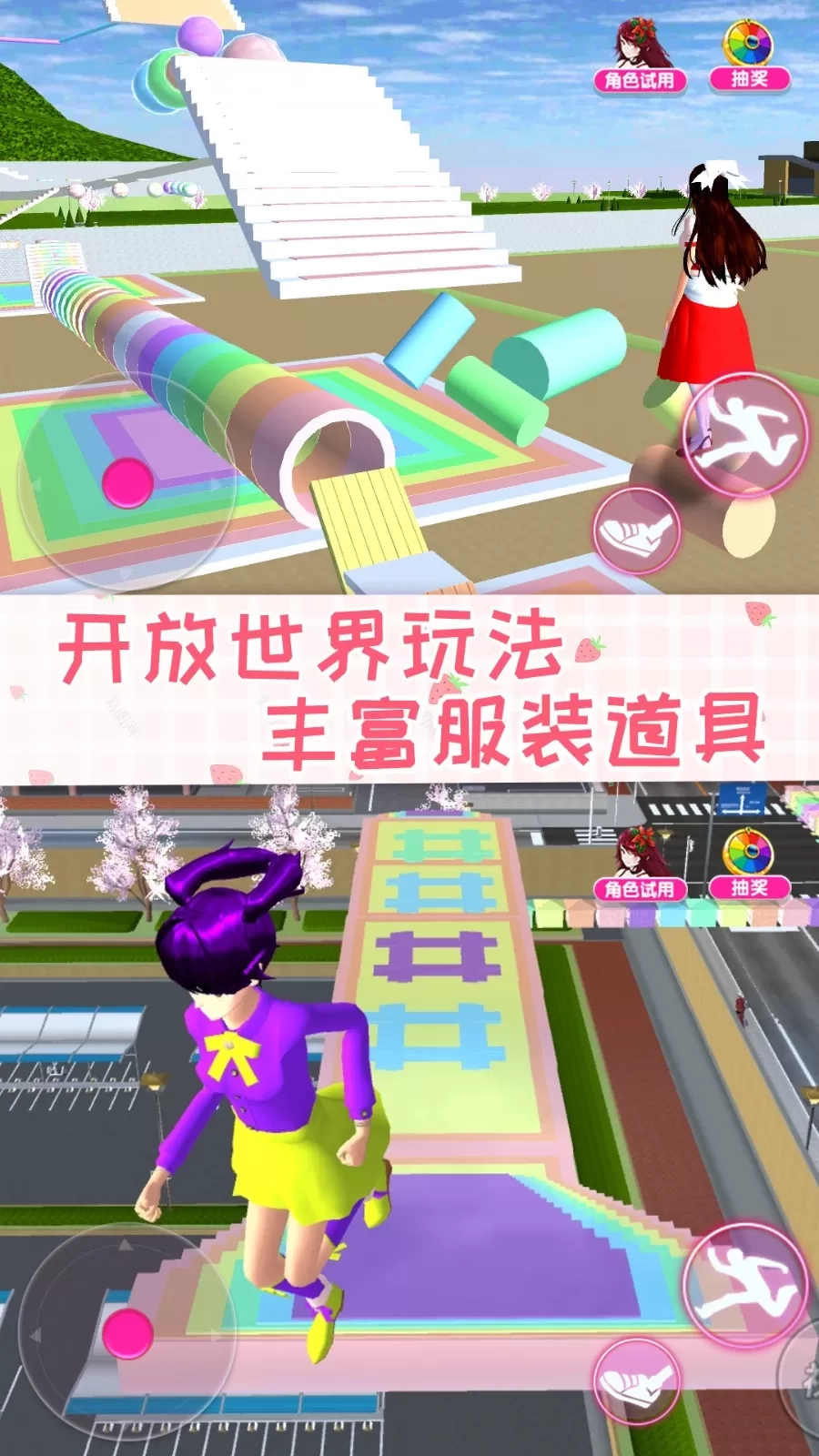 《樱花校园闺蜜日常》是一款独具二次元风格的跑酷游戏。快来与二次元少女一同在虚拟世界里,投身于各式各样主题的跑酷挑战之中!游戏运用3D自由视角,构建出立体的跑酷地图,这不仅增添了诸多挑战,更为玩家创造出更为广阔的发挥空间。而且,玩家在游戏过程中还能获取丰富多样的装扮道具,打造风格各异的形象,尽情享受跑酷的乐趣!