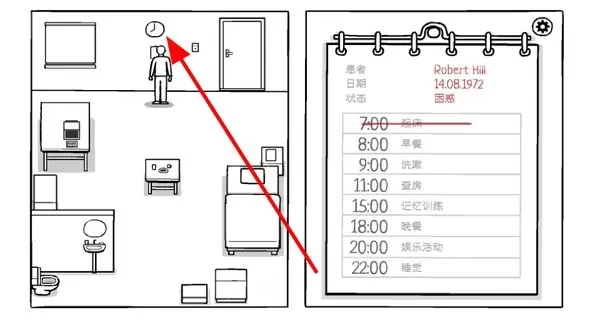 玩法围绕遵循严格日程表展开,在固定时间内完成指定活动如用餐和冥想,结构化的流程与寻找记忆线索的行为形成有趣的互动关系。