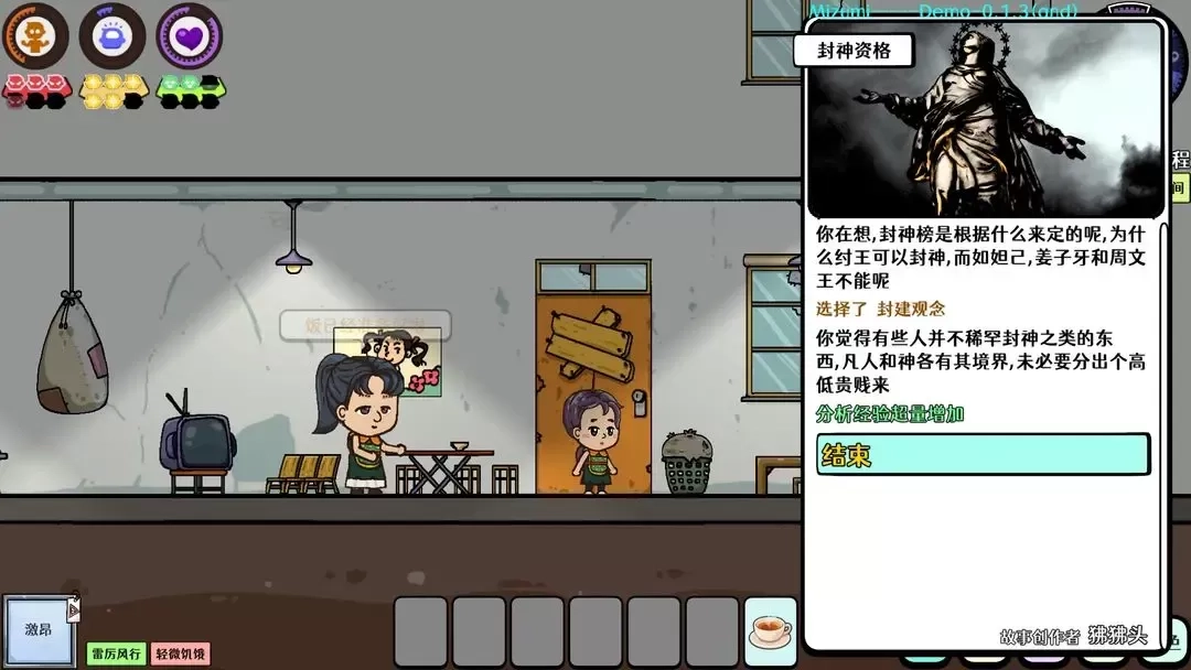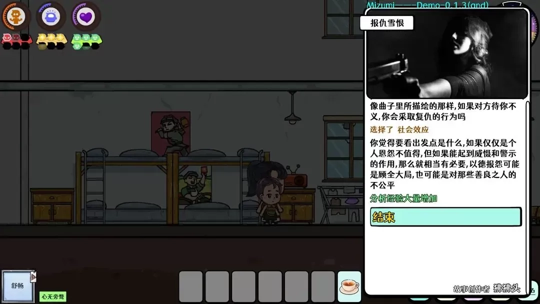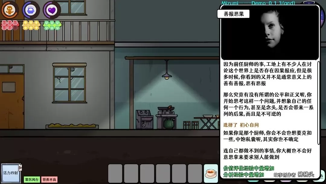 玩家做出的选择,不仅会对自身的人生轨迹与价值观产生影响,比如使玩家在行为处事上更偏向理性或是感性,而且会改变玩家与NPC之间的关系,由此触发不同的剧情分支。