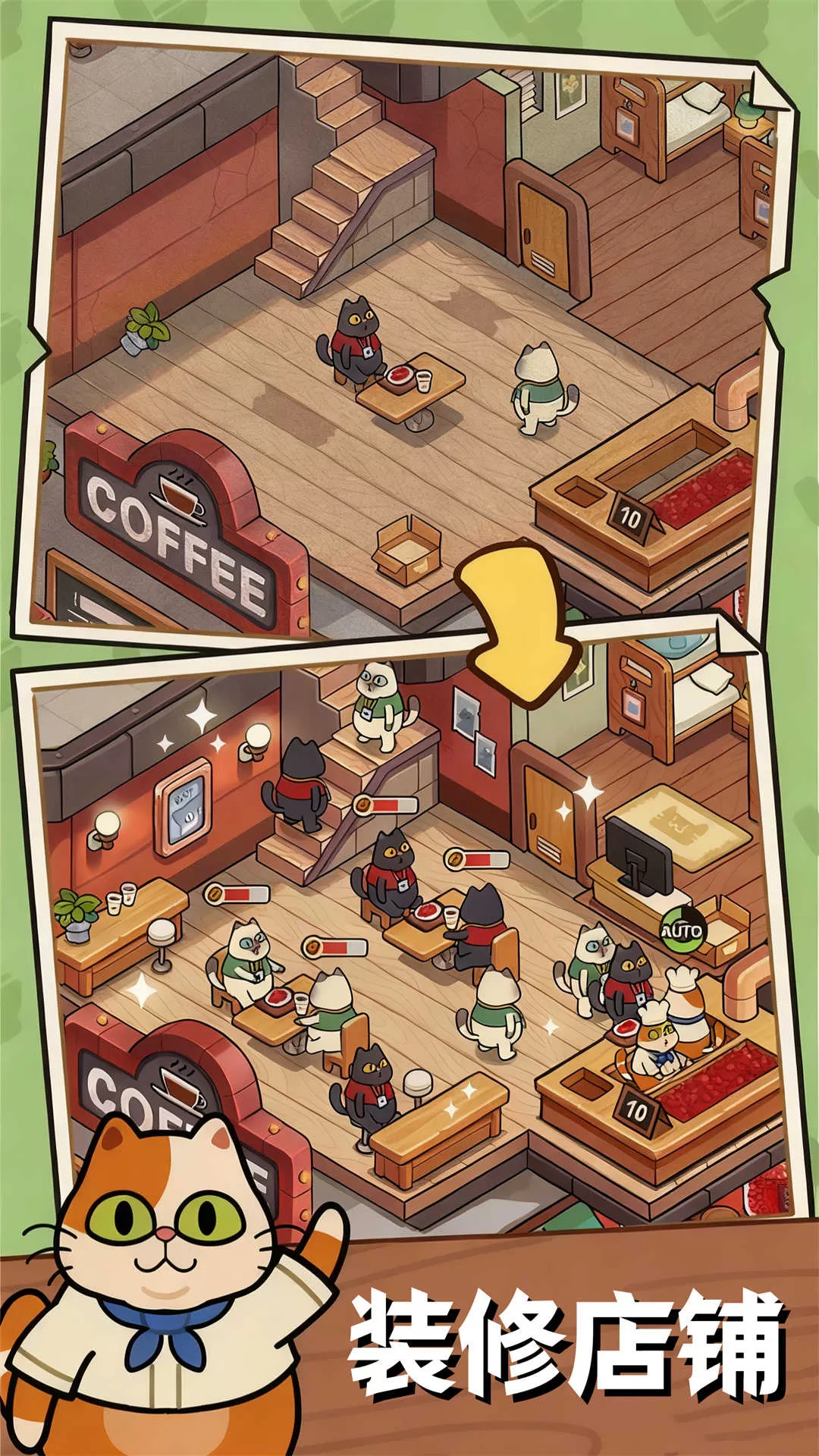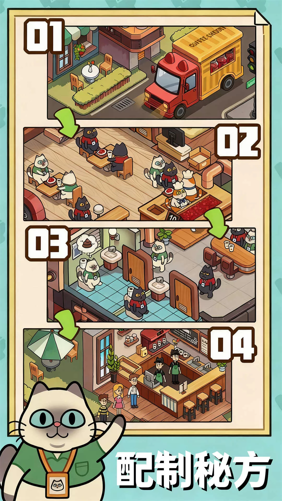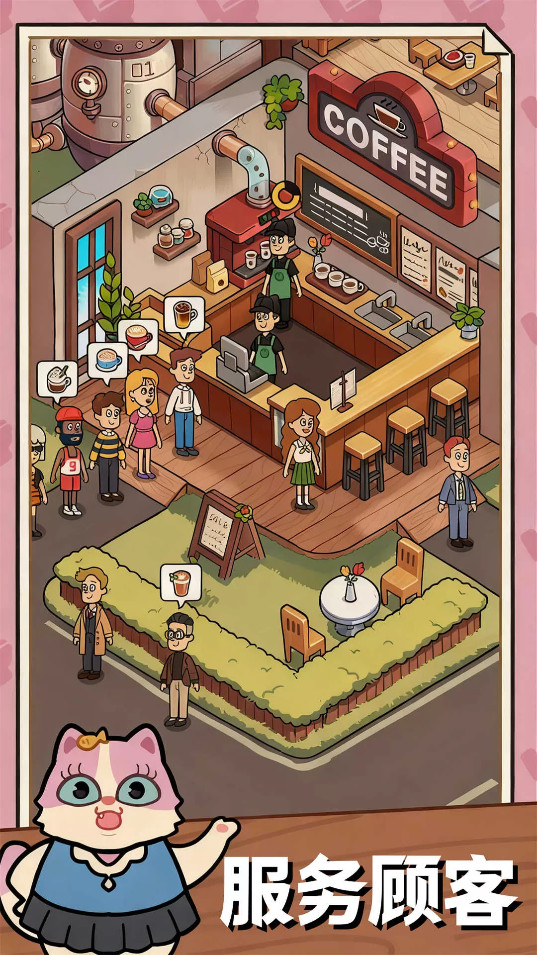 1. 别具一格的经典咖啡店模拟经营养成类游戏,你将负责管理猫主题咖啡馆,悉心照料形形色色可爱的猫咪,同时提供丰富多样的服务。
