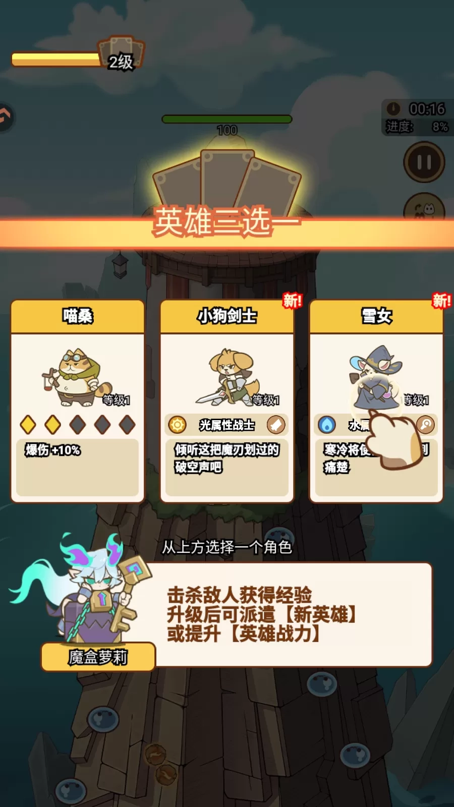 2、每次升级都将从多张英雄卡牌中任选其一,获得新能力或强化现有属性,构筑属于你的独特战斗风格。