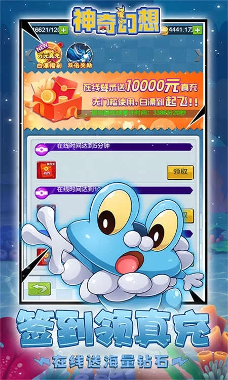 4、每日签到领真充奖励,在线时长再送海量钻石,轻松积累成长资本。