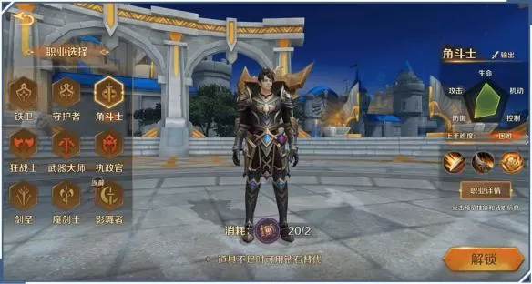 特点:战士是战场的核心,手中盾牌不仅保护同伴,也是强力武器。拥有剑和护盾的是战士,这个职业的特点为生命、防御和控制,其定位是近战、坦克。上手操作较简单。后期可以觉醒成为坦克类的护卫和守护者,也可以觉醒为输出类的角斗士。