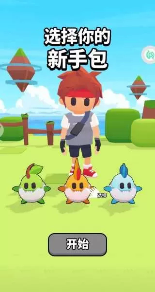 2、选择你的新手包,有3个可爱的精灵,我选的是绿色精灵,点击开始就能冒险了。