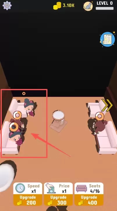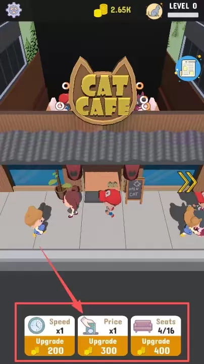 1、看猫咖界面,选速度价格座位升级,分别花200、300、400金币。