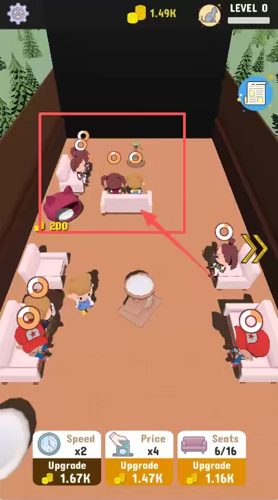 2、瞧室内场景,点底部速度价格座位升级,花200、300、400金币。