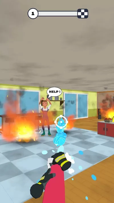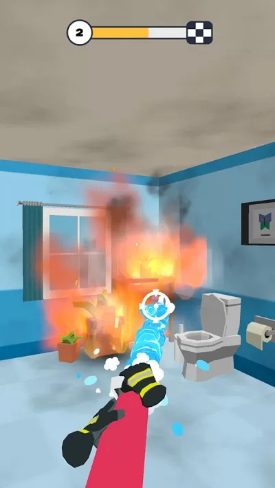 1、屋子里到处都是火堆,我们需要将准心对准火堆,进行灭火,将里面被困的人员解救出来。